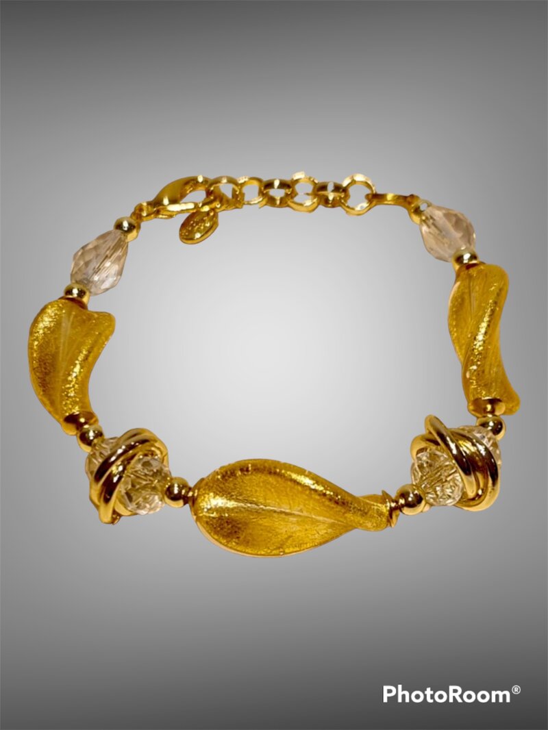Bracciale in vetro di Murano eseguita con la lavorazione “sommersa” e montato con conterie e cristalli. Le parti metalliche sono senza nichel a norma di legge.