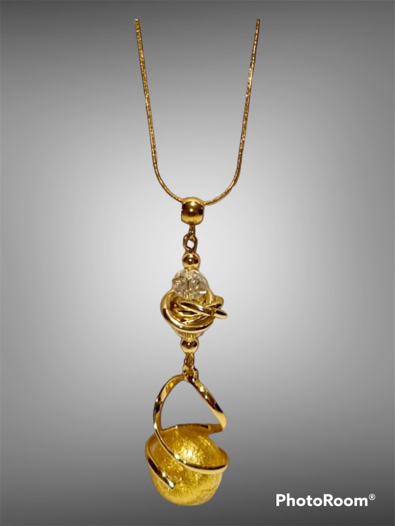 Pendente in vetro di Murano eseguito con la lavorazione “sommersa” e montato con conterie e cristalli. Le parti metalliche sono senza nichel a norma di legge.
